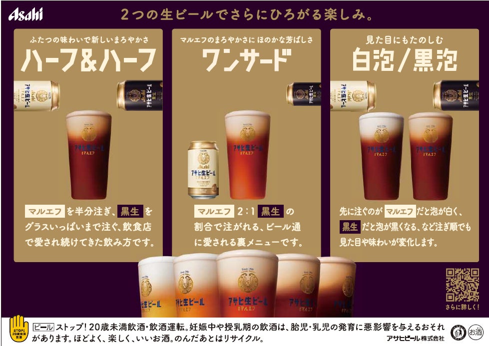 “マルエフ”と“黒生”の缶商品はこれまで350mlと500mlの展開でしたが、新たに250mlの小容量を発売することで、1:1で混ぜる「ハーフ&ハーフ」や2:1で混ぜる「ワンサード」といった飲み方を手軽に楽しめる機会を創出します。手に取りやすい小容量の発売を通じて、まだ両商品を飲用したことがないお客さまなどの購入喚起や飲用喚起を図ります。